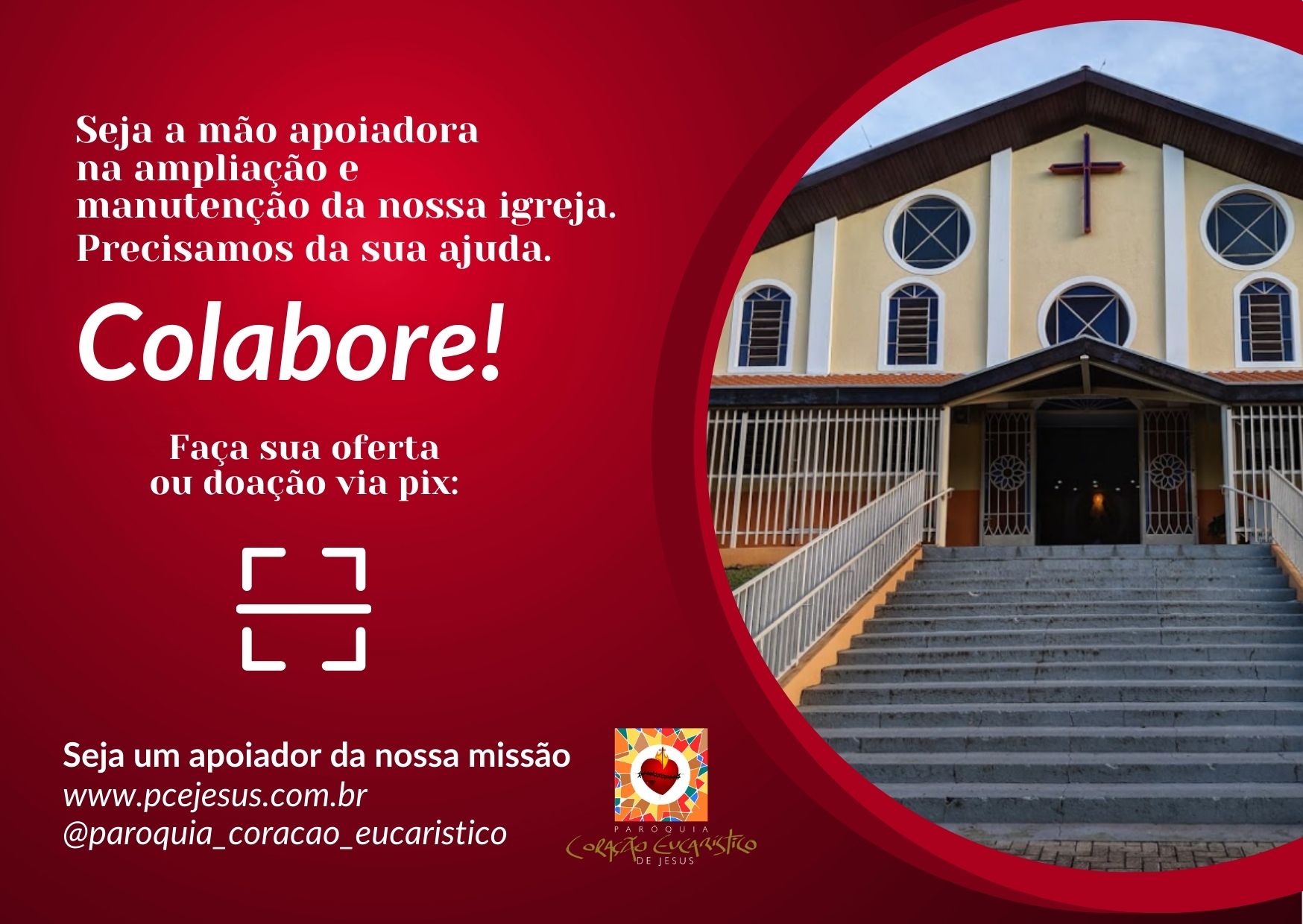 Seja um contribuinte desta Obra evangelizadora e ajude a Paróquia Coração Eucarístico de Jesus na missão de Evangelizar!